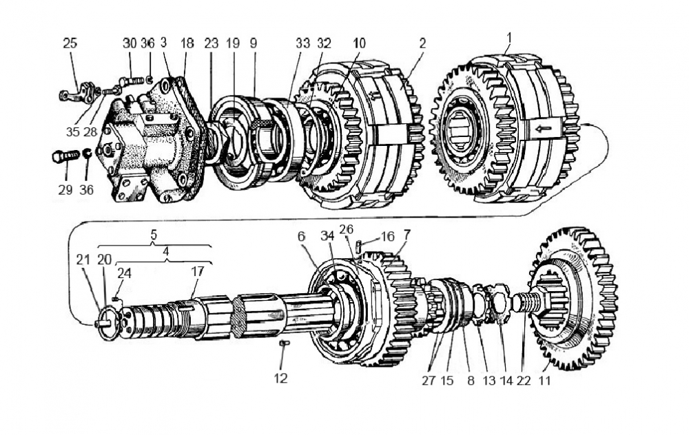 Набір валу вторинного КПП із розподільником правим ХТЗ-249К.20